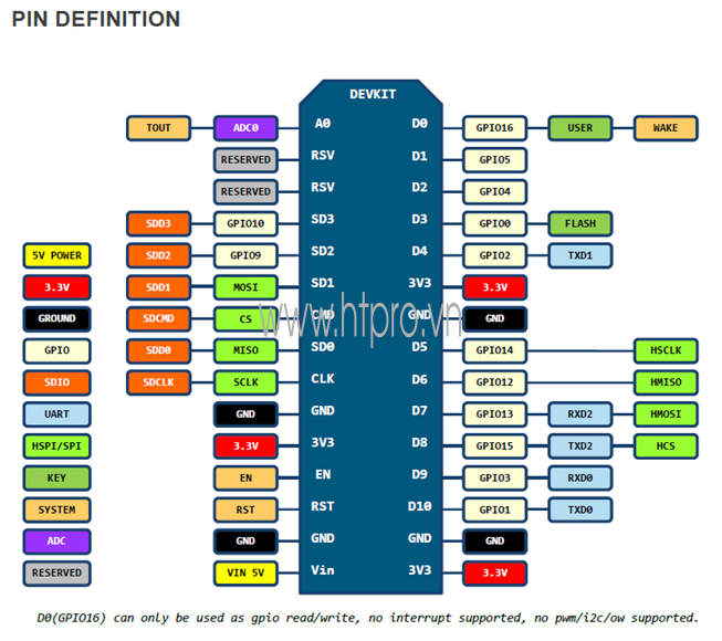 Board ra chân cho ESP8266-12F tích hợp chíp giao tiếp USB, có thể nạp chương trình nhanh chóng, dễ dàng. Module được thiết kế nhỏ gọn, phong phú các module phụ trợ như OLED, LED RGB,...