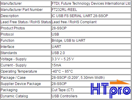 FT232RL Ứng dụng giao tiếp với máy tính qua cổng USB chuẩn RS232 TTL.