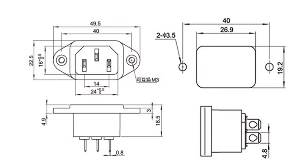 Ổ cắm nguồn AC-04 AC 10A/250V 3 chân